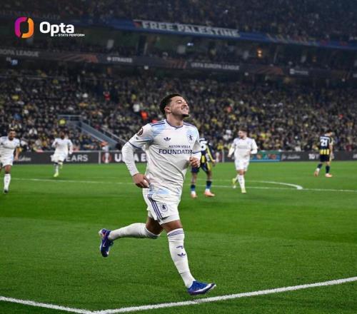 欧联杯联赛阶段第7轮,维拉客战费内巴切,上半场桑乔破门为维拉取得领先,据统计,桑乔近8个赛季欧战都有进球,为同期英格兰球员第三人。